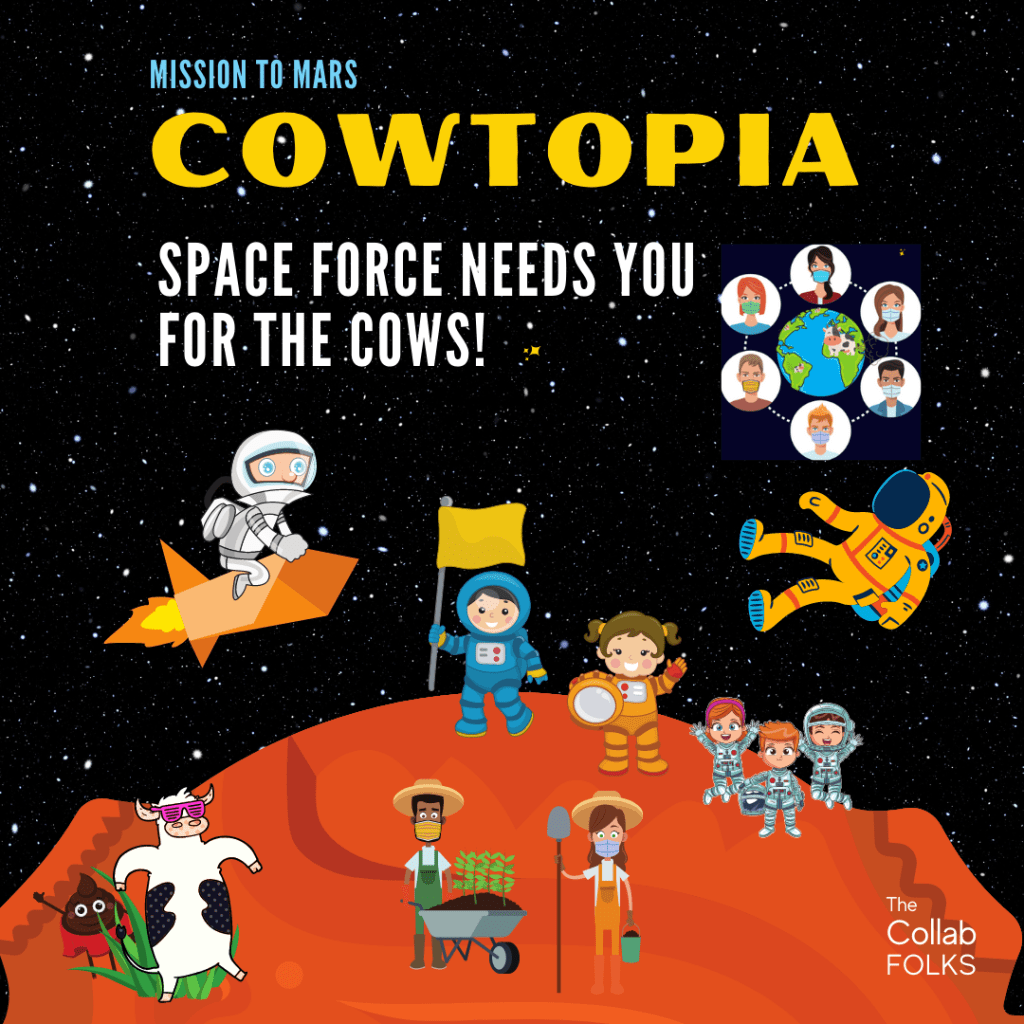 First conceived in 2016 during client workshops to help teams learn about agility, product design and development, COWTOPIA Mission to Mars is a brand new online game to help product teams learn about themselves and how agile concepts, design and product development can help them save Planet Earth from methane emissions from Cows in 2056.