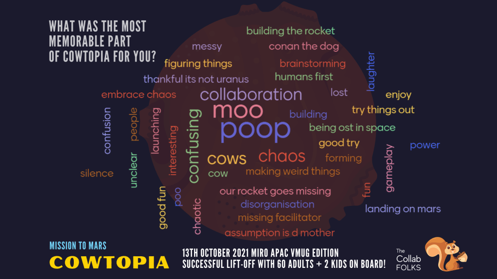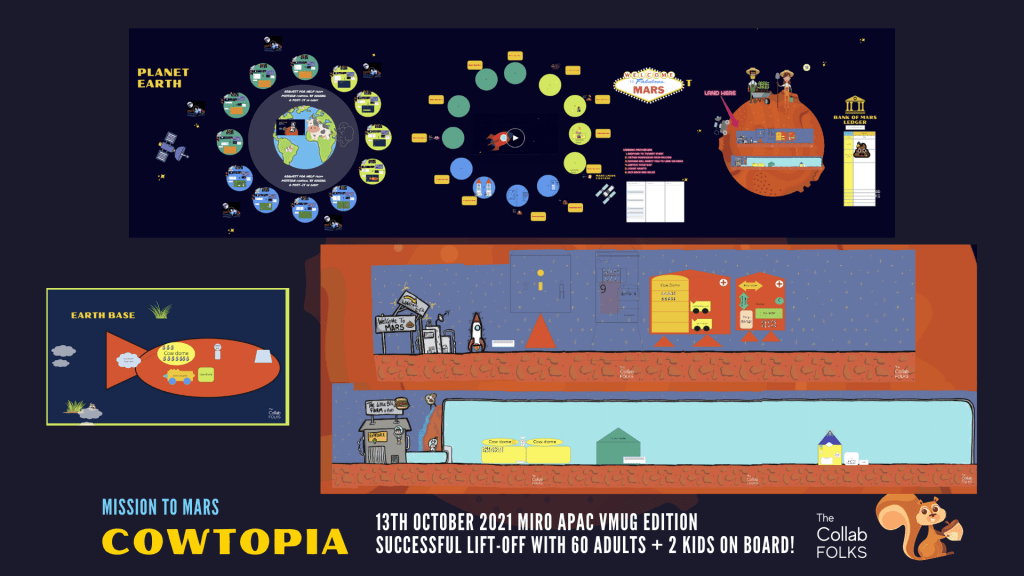 When Isman Tanuri reached out back in early September if the #COWTOPIA team would be interested to share about the game with Cows, Space Dragons and Mars to save our planet from methane-geddon at Miro APAC community, the team quickly responded with some zany laugh and learn ideas to get us ready.